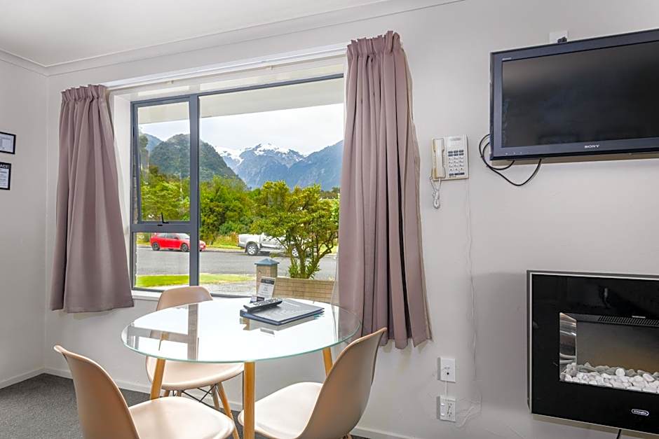 Guests benefit from unlimited complimentary Wi-Fi, free onsite parking, and shared laundry and barbecue facilities. Many rooms and the motel grounds offer sweeping views of snow-capped mountains and the Croz Glacier, providing a constant reminder of the area’s natural beauty.